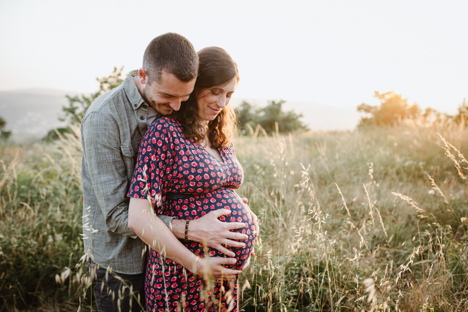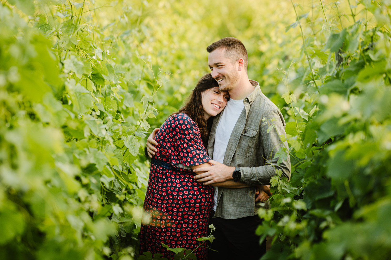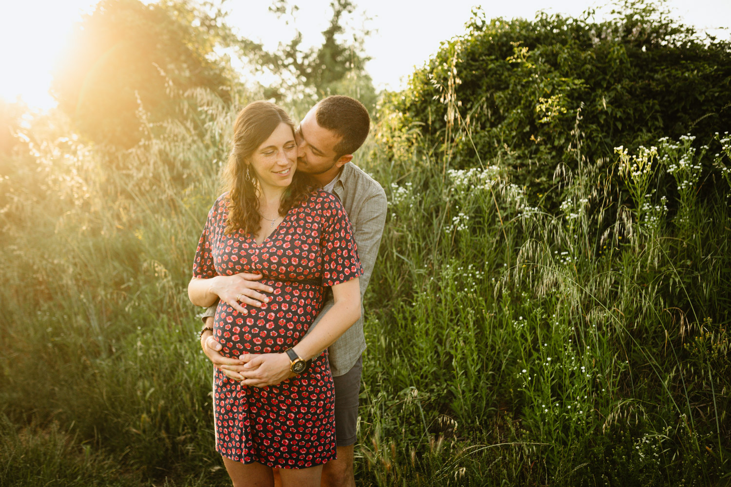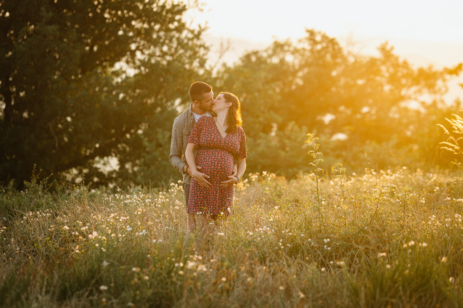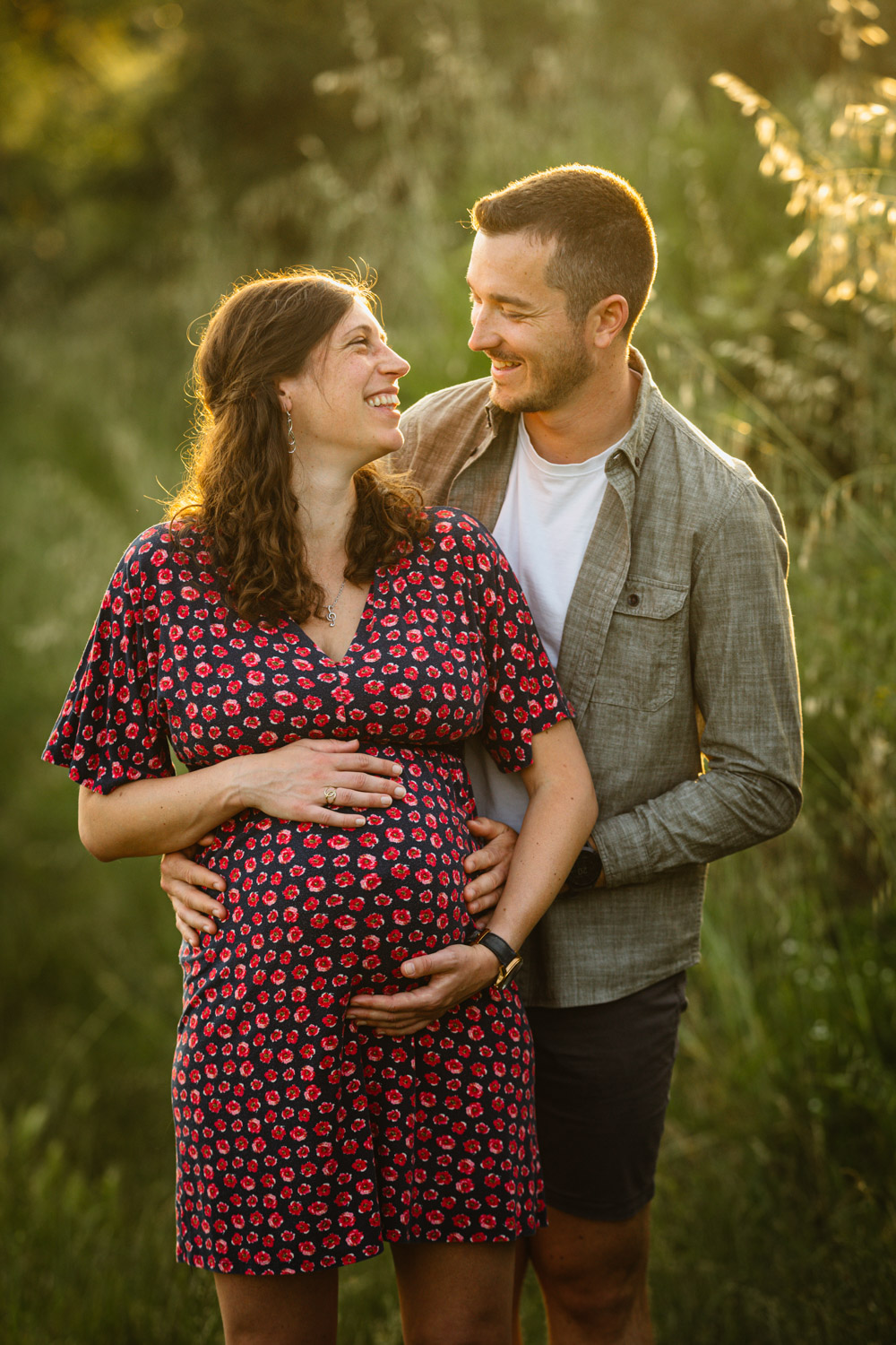 Comme vous pourrez le remarquer, nos chers futurs parents mignons tout plein ont bénéficié d’un cadre incroyable au milieu des vignes, tout en étant bercés par une lumière douce et magnifique : c’est la fameuse lumière de l’heure dorée en fin de journée, également appelée « golden hour » en anglais. J’affectionne tellement cette lumière et ses reflets. C’est précisément pour cette raison que je préconise toujours de faire votre séance d’été en fin de journée et croyez-moi, vous ne le regretterez pas !
