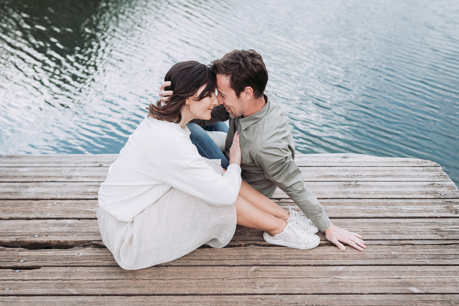 Travaillant en lumière naturelle, je privilégie les débuts ou fins de journée pour une lumière douce. J’accompagne tous les couples qui pensent « ne pas savoir poser », et croyez-loi, vous êtes nombreux à être dans ce cas ! Nous construisons la séance autour de petites actions simples pour avoir un résultat vrai et loin des poses standards. D’autres exemples de séances au printemps et en automne sont visibles dans cet article de séance engagement à Lyon au printemps et dans cet exemple de séance engagement en automne à Lyon.