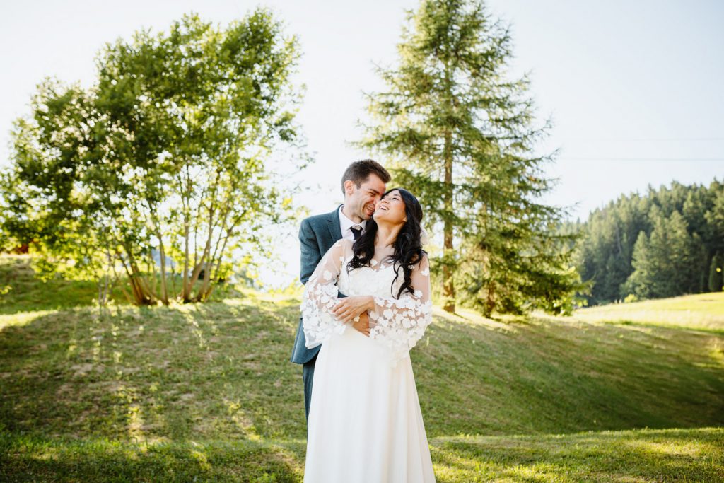 Nous vous conseillons de prévoir une séance de couple courte la veille ou le lendemain du mariage, pour profiter pleinement de la vue sans être pressés par le déroulé du jour J. La lumière du matin sur les collines est magnifique, tout comme la golden hour sur les vignes.